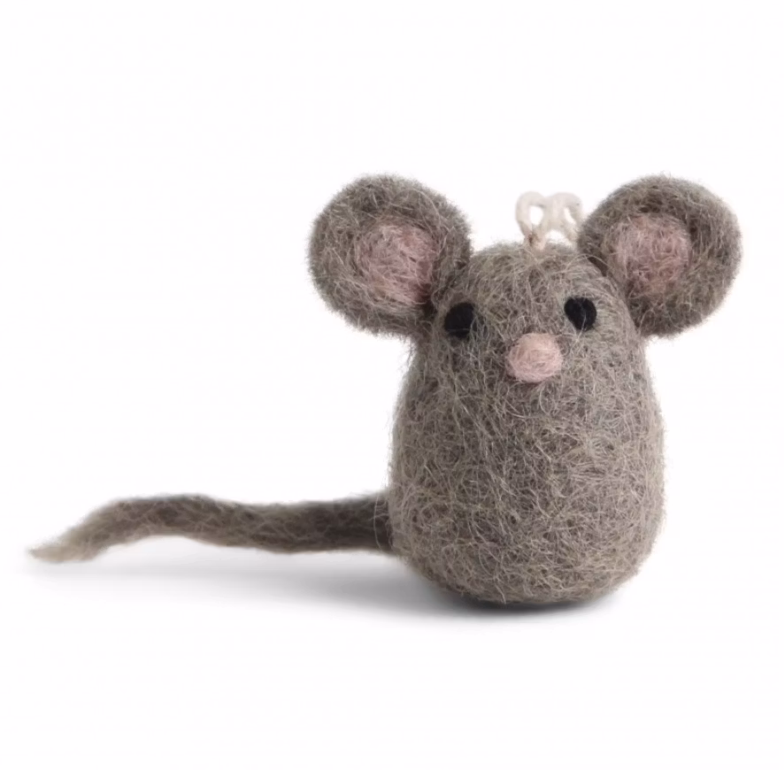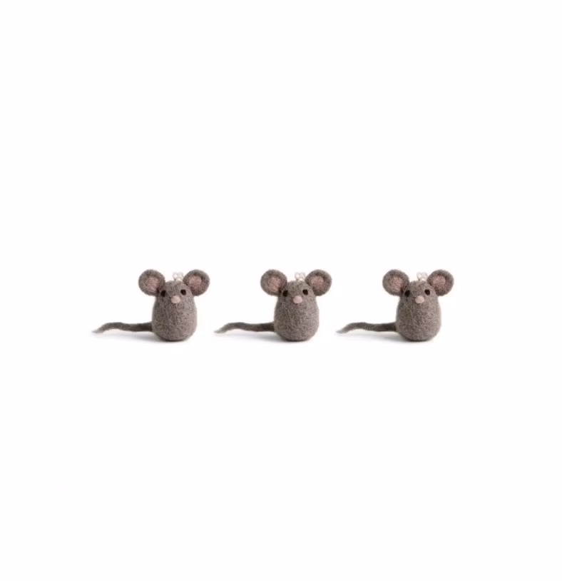 Dessa tre, riktigt små, söta möss är ett dekohänge som även blir en rolig dekoration på exempelvis presenter. Varje mus har en ögla/hängare av ganska kraftigt bomullssnöre.