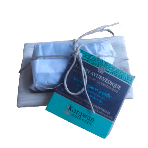 En mild ayurvedisk tvål till alla hud- och hårtyper. Med Vetiver som har en lätt jordig doft, huvudsakligen av den eteriska olja som utvinns från vetivergräsets rot, och de eteriska oljorna från ajwain och cederträ.