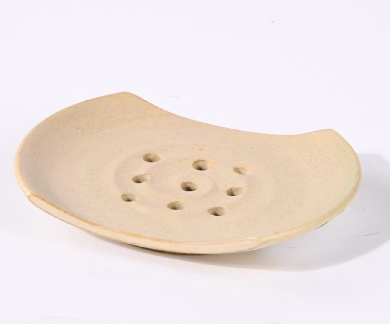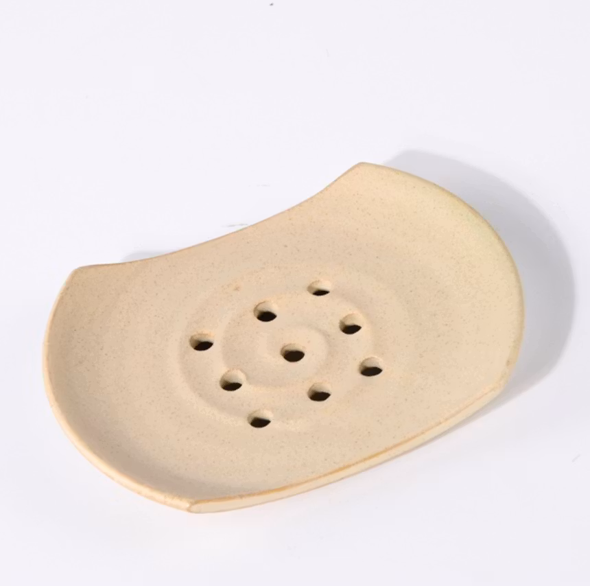 Tvålkopp eller tvålfat i en lite ovanlig, men mycket praktisk form, som på bilden. Långsidorna är raka, medan kortsidorna är något upphöjda och ovala. Tvålfatet är handgjort på drejskiva. Flera hål i botten gör att den blöta tvålen kan torka, vilket är viktigt för hygienen.
