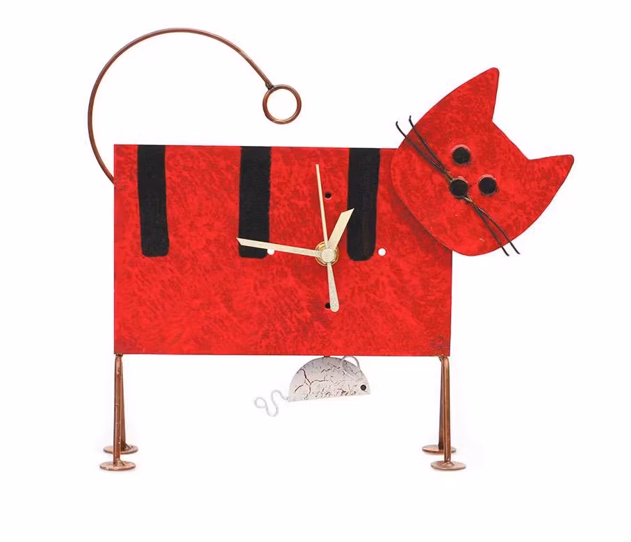 Bordsklockan eller bordsuret med pendel är ett liten konstverk av återvunnen metallskrot. Klockan har formen av en röd katt, som står stadigt. Pendeln under kattens mage är en liten mus som ilar fram och tillbaka i sekundtakten. Uret är ett välgjort exempel för kreativt återbruk, upcycling.