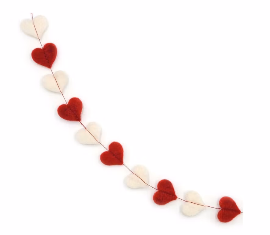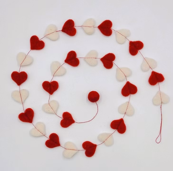 Julgirlang / Bordsdekoration röda o vita hjärtan, tovad