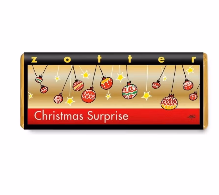 Zotter Christmas Surprise, karamellnougat, chokladpralin, ekologisk
