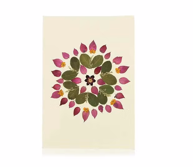Material: återvunnet papper, torkade och pressade vildblommor.