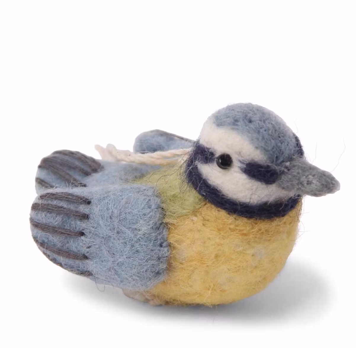 Den lilla tovade blåmesen är en dekoration som håller vår/sommarkänslorna kvar. Den omtyckta sångfågeln har en ögla/hängare av ganska kraftigt bomullssnöre. Dekorera en present, låt fågeln vara en liten gåva eller gläd dig själv åt detta fina dekohänge.