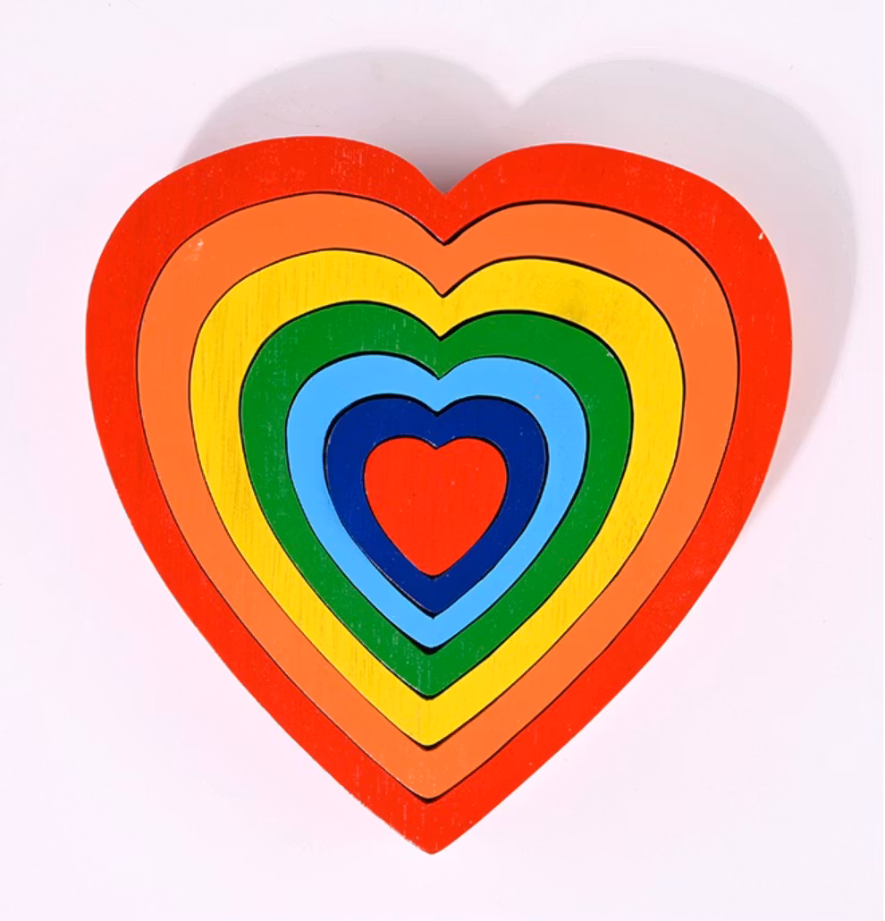 Pussel, Regnbågshjärta, 7 delar, trä