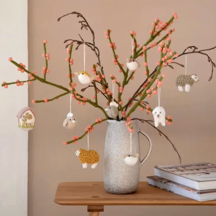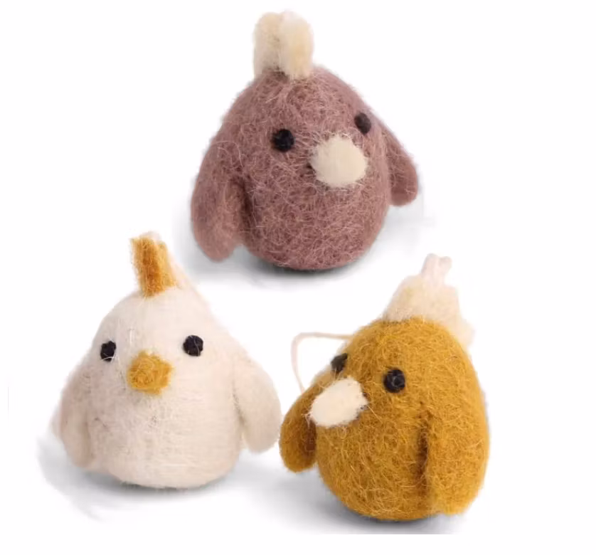 Pynta påskriset med 3 tovade små kycklingar, tovade i trendiga dämpade färger! Alla kycklingar är lika söta att se på. De är verkligen små, med perfekt storlek till påskriset. Eller som dekoration till presenten. Eller så kan de gömmas i stora påskägg. Det finns många tillfällen att skänka glädje med dessa små konstverk.